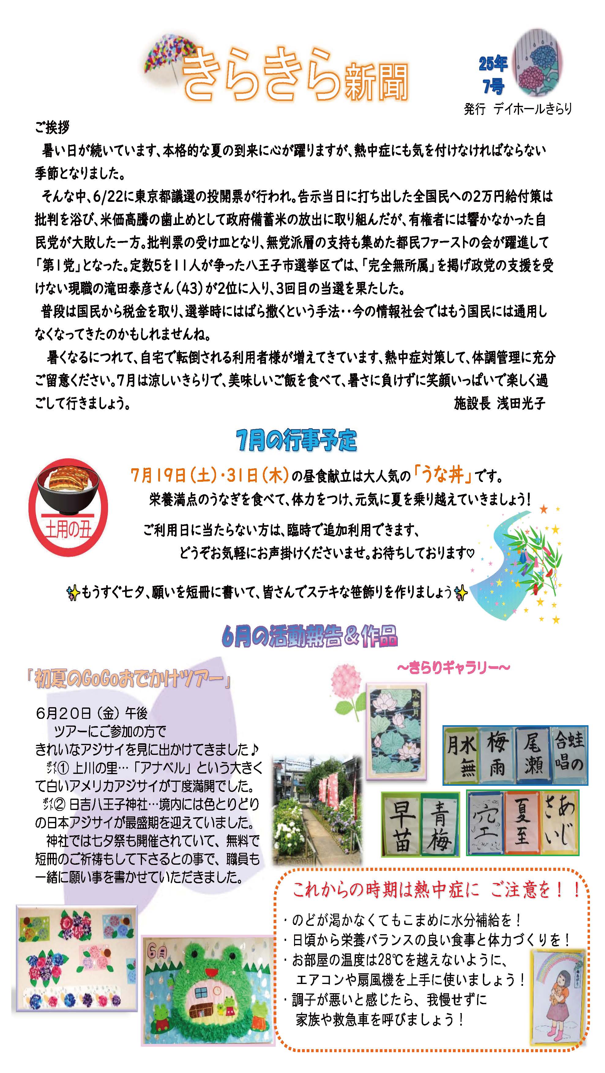『きらきら新聞_7月号』 『うららだより_7月号』