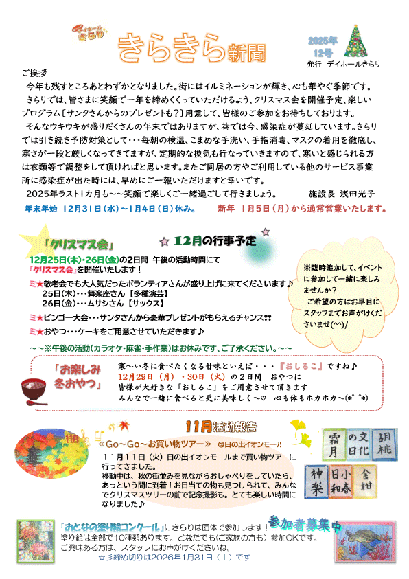 『きらきら新聞_12月号』 『うららだより_12月号』